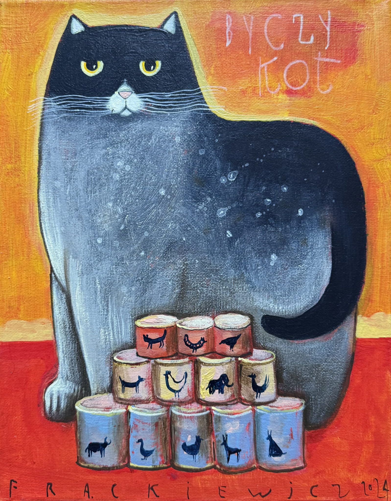 Jacek Frąckiewicz „Byczy kot (The bull cat)", acrylic on canvas, 30 x 24 cm, 2022 r.